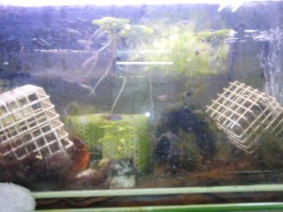 めだか成魚と稚魚の共生を図って何か月か、ヤマトヌマエビが成魚を襲っていたとかで別居させました。それでも新しい成魚を入れても死にました。たぶん隠れ家のさびが付く金網がいけないと思い外しました。そして一世を風靡した、水をクリーンにする石が傷んできたのでおかしいと思い取り出し、最終では60センチの水槽の水を4分の3取り換えました。いまうじゃうじゃいた稚魚も5,6匹に。成魚を入れずに、それだけでマツ藻が群生する水槽に大事に彼らの様子を見ようと思います。なおマツ藻の中に独自の発案で、台所の流しの三角コーナーを浮かべて稚魚の逃げ場にしていたのは、しばらく稚魚発生誕生には大いに役にたちました。しかしそれもまるで水がいけないかのようにいなくなりました。結論としては、どこのペット屋さんも声をそろえて言う、ヤマトヌマエビはメダカを攻撃しない。水槽の水を定期的に変えるのがいいと思うようになりました。がんばって懲りずにやってみようと思います。ご苦労さんですね(笑い)。